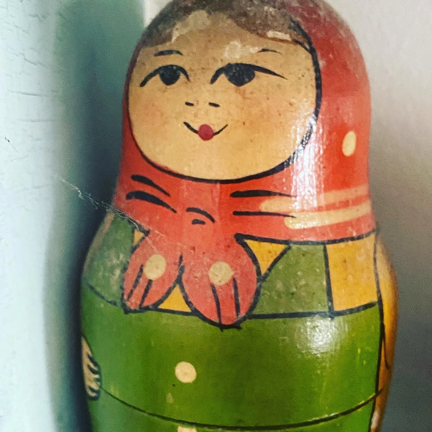 The image is inspired by my great-great-grandmother’s nesting doll, a treasured object that once sat just out of reach. I wasn’t allowed to play with it. When I was eight, I broke one of the dolls anyway. Today, that same matryoshka holds a place of honor in my living room. It feels fitting—something once fragile and untouchable now fully integrated into my daily life, just like the legacy it represents.